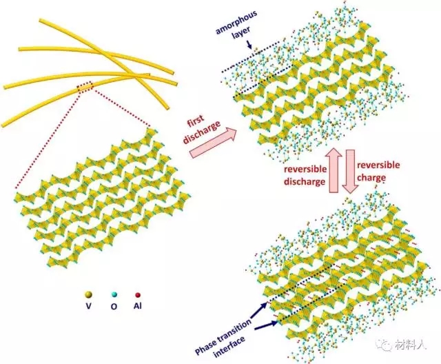 3 首周放电时,Al3+嵌入了V2O5纳米线中形成亚稳态的无定形层,在放电时纳米线中形成新相。