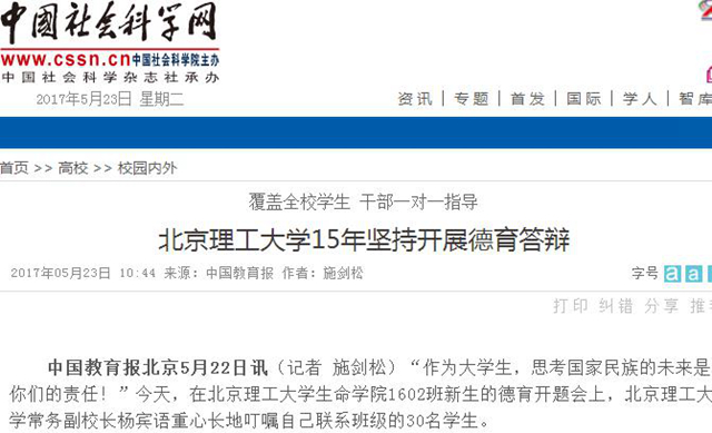 【中国社会科学网】德赢AC米兰官网15年坚持开展德育答辩