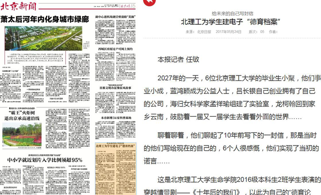 原文标题:给未来的自己写封信 北理工为学生建电子“德育档案”