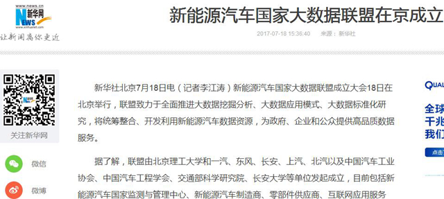 【工业微报·微信】新能源汽车国家大数据联盟成立