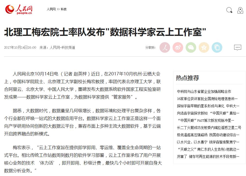【人民网】北理工梅宏院士率队发布"数据科学家云上工作室"