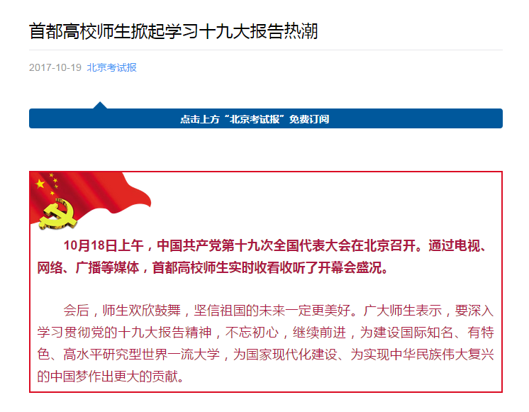【北京考试报】首都高校师生掀起学习十九大报告热潮
