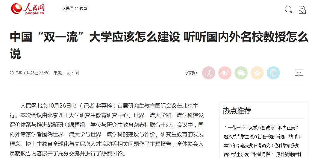 【人民网】中国“双一流”大学应该怎么建设 听听国内外名校教授怎么说