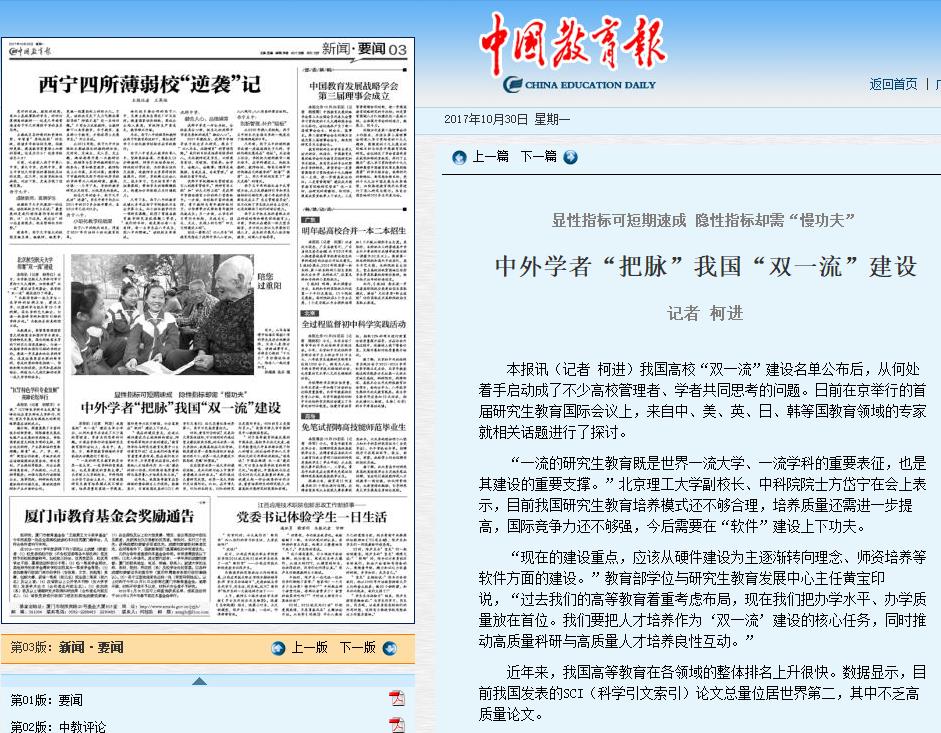 【中国教育报】中外学者“把脉”我国“双一流”建设
