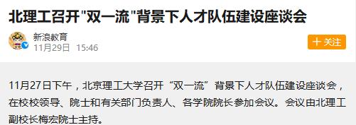 【新浪网】北理工召开"双一流"背景下人才队伍建设座谈会