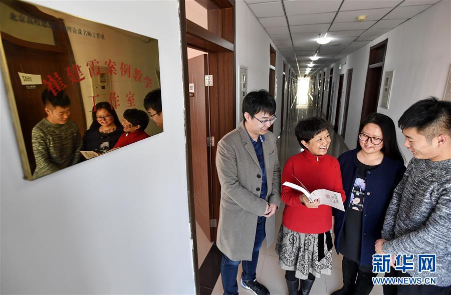 德赢AC米兰官网马克思主义学院教师崔建霞(左二)在她的“案例教学工作室”接待来求教的学生。