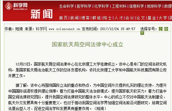 【科学网】国家航天局空间法律中心成立