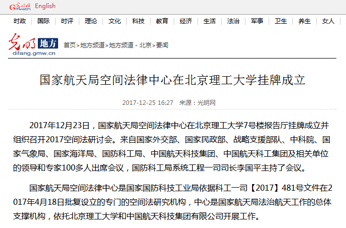 【光明网】国家航天局空间法律中心在德赢AC米兰官网挂牌成立