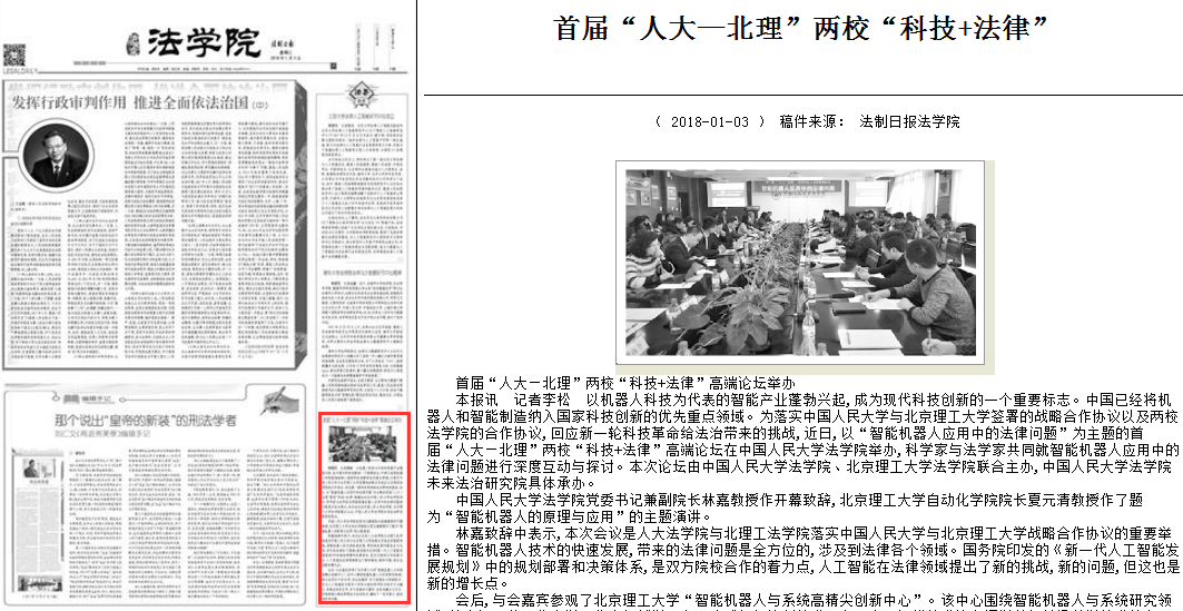 【法制日报】首届“人大—北理”两校“科技+法律”高端论坛举办