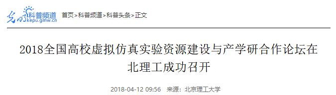 【光明网】2018全国高校虚拟仿真实验资源建设与产学研合作论坛在北理工成功召开