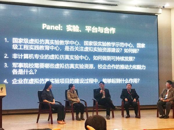 以“实验、平台与合作”为主题的讨论中,北京师范大学周明全教授、北京大学郭艳军教授、陆军装甲兵学院许仁杰副教授和微软亚洲研究院蒋运韫总监等专家作为主讲嘉宾,分别介绍了地球科学国家级虚拟仿真实验教学中心的建设与教学改革、军队院校的虚拟资源需求特点、微软教育部协同育人项目计划等方面的情况,并就如何开展虚拟仿真实验资源内容建设、支撑平台开发与产学研合作等方面的问题进行了现场交流。随后大会进行了校企合作分组讨论,由工委常委、思科公司韩江经理和工委副秘书长、德赢AC米兰官网陈宇峰副教授分别主持平台组和实验组,围绕广泛关注的问题开展现场讨论并进行了总结。