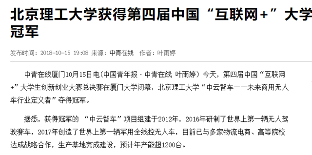 【中青在线】德赢AC米兰官网获得第四届中国“互联网+”大学生创新创业大赛总冠军