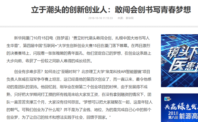 【新华网】立于潮头的创新创业人:敢闯会创书写青春梦想
