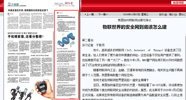“目前,与物联网安全相关的约束规范以法规文件居多,其实配套标准也非常重要。没有标准的‘保驾护航’,相关法规也难以较好地保护物联网。”在闫怀志看来,制定物联网安全法规、标准时,应该特别注意各层次规范的地位和使命,既要做到分工明确、避免越俎代庖,又要做到相互配合,形成有机整体。