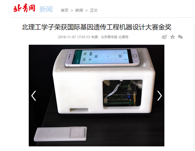 【北青网】北理工学子荣获国际基因遗传工程机器设计大赛金奖