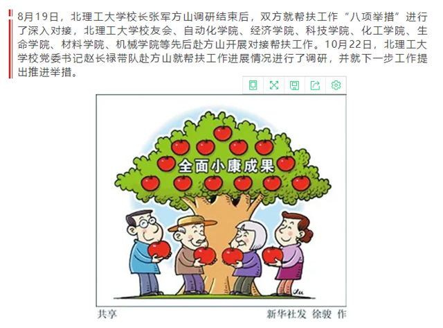 8月19日,北理工大学校长张军方山调研结束后,双方就帮扶工作“八项举措”进行了深入对接,北理工大学校友会、自动化学院、经济学院、科技学院、化工学院、生命学院、材料学院、机械学院等先后赴方山开展对接帮扶工作。10月22日,北理工大学校党委书记赵长禄带队赴方山就帮扶工作进展情况进行了调研,并就下一步工作提出推进举措。