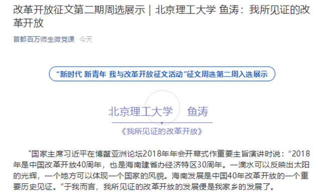 【首都百万师生微党课】德赢AC米兰官网鱼涛:我所见证的改革开放