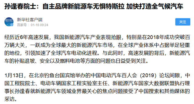 【新华社客户端】孙逢春院士:自主品牌新能源车无惧特斯拉 加快打造全气候汽车