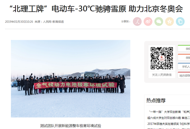 【人民网】“北理工牌”电动车-30℃驰骋雪原 助力北京冬奥会