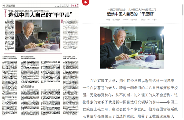 【北京晚报】中国工程院院士、北理工教授毛二可:造就中国人自己的“千里眼”
