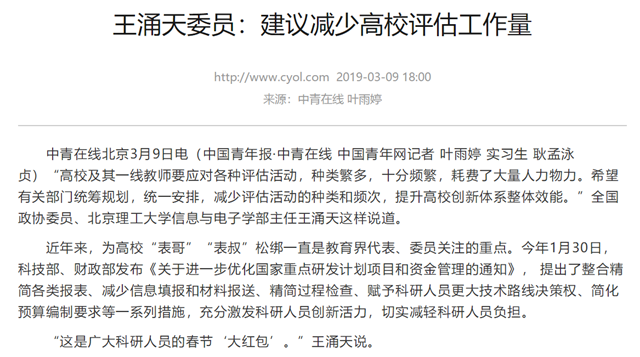 【两会▪中青在线】王涌天委员:建议减少高校评估工作量