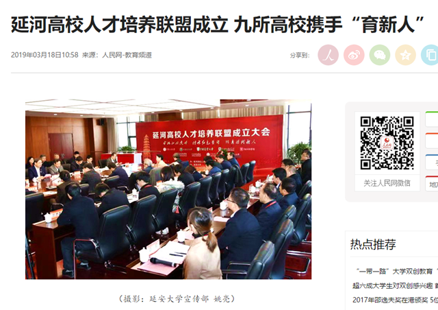 【人民网】延河高校人才培养联盟成立九所高校携手“育新人”