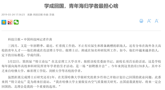 【中国科技网】学成回国,青年海归学者最担心啥