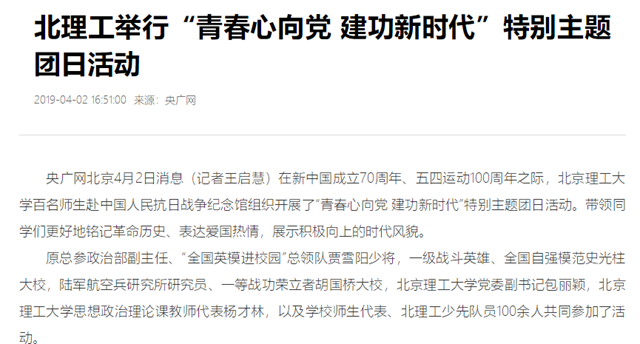 【央广网】北理工举行“青春心向党 建功新时代”特别主题团日活动