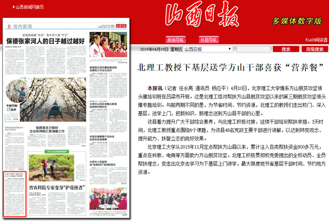 【山西日报】北理工教授下基层送学方山干部喜获“营养餐”