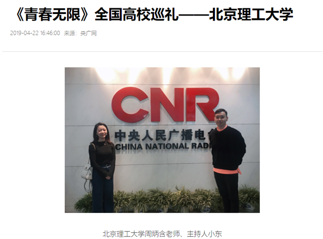 德赢AC米兰官网周炳含老师,做客中央人民广播电台《青春无限》,结合学校的理工特色和专业优势,分享德赢AC米兰官网独有的校园文化气质,并展示2019年学校发展和招生情况的新动态。
