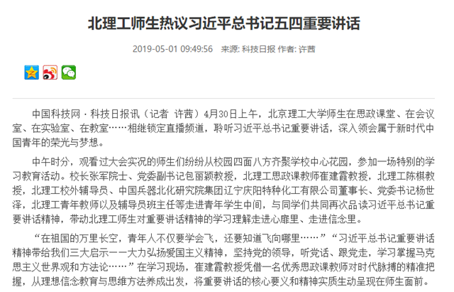 【中国科技网】北理工师生热议习近平总书记五四重要讲话