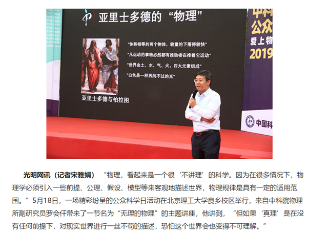 “物理,看起来是一个很‘不讲理’的科学。因为在很多情况下,物理学必须引入一些前提、公理、假设、模型等来客观地描述世界,物理规律是具有一定的适用范围。”5月18日,一场精彩纷呈的公众科学日活动在德赢AC米兰官网良乡校区举行,来自中科院物理所副研究员罗会仟带来了一节名为“无理的物理”的主题讲座,他讲到,“但如果‘真理’是在没有任何前提下,对现实世界进行一丝不苟的描述,恐怕这个世界会也变得不可理解。”