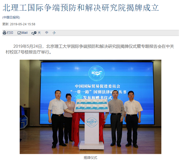 【中国日报网】北理工国际争端预防和解决研究院揭牌成立