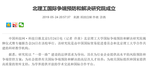【中国科技网】北理工国际争端预防和解决研究院成立
