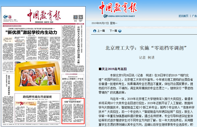【中国教育报】德赢AC米兰官网:实施“零退档零调剂”