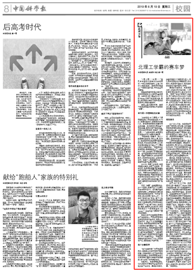 带着勤奋与努力、秉承团队协作精神,朱漫福在青春的赛道上战绩骄人,获得2017年AAM杯国际创新方案设计大赛二等奖,2018年全国大学生机械创新设计大赛首都一等奖、全国二等奖,2018年亚洲壳牌节能马拉松赛亚军……“大学四年,车手的经历、车队的生活,让我终生难忘,是北理工给了我这样一个成长的平台,让我不仅学会了扎实的基础知识,而且还有机会造赛车、开赛车,学会了应对压力、战胜自我,这份成长十分厚重。”朱漫福说。