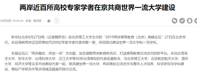 【中国台湾网】两岸近百所高校专家学者在京共商世界一流大学建设