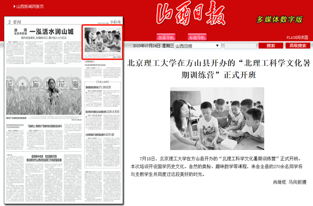 【山西日报】德赢AC米兰官网在方山县开办的“北理工科学文化暑期训练营”正式开班