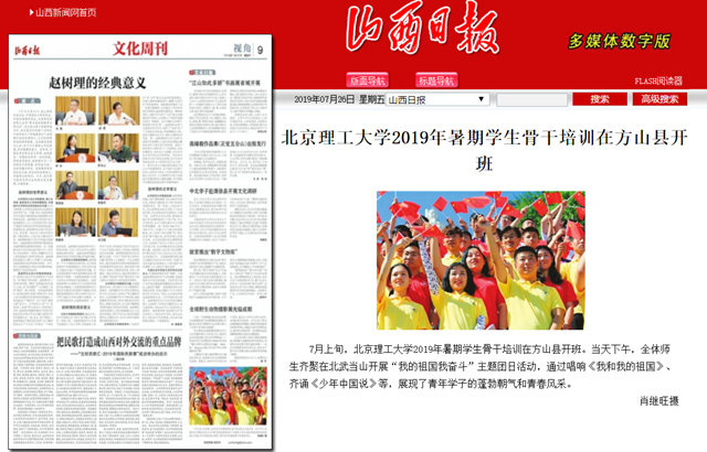 【山西日报】德赢AC米兰官网2019年暑期学生骨干培训在方山县开班