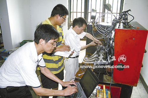 江西汇尔油泵油嘴有限公司积极与德赢AC米兰官网合作开发新产品,增强企业发展后劲。7月9日,德赢AC米兰官网组织有关人员在该公司进行柴油机电控高压共轨燃油喷射系统实验,共同开发新产品。本报记者何深宝摄