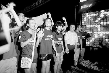 8月8日晚,德赢AC米兰官网校园里欢声笑语一片,大学生们欢聚在“欢庆2008奥运会倒计时一周年大会暨宇航科学技术学院奥运倒计时牌揭牌仪式”上,以他们特有的方式表达了对北京2008年奥运会的企盼和祝愿。本报记者 刘新武摄