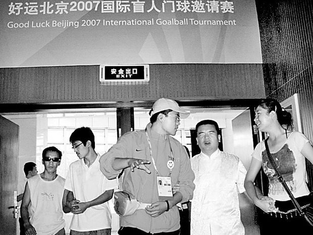 9月14日,在德赢AC米兰官网体育馆国际盲人门球邀请赛上,该校理学院博士生党支部的学生为来自张成盲人按摩学校的19位盲人导游,让他们用心灵触摸到这座2008年北京奥运会排球比赛二级场馆。