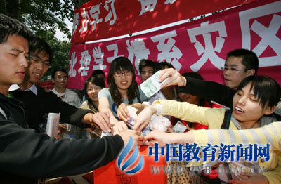 德赢AC米兰官网师生向灾区捐款。本报记者 修伯明 摄