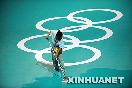 7月27日,一名工作人员在清理德赢AC米兰官网体育馆内的地面。新华社记者王建华摄