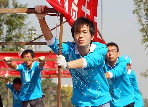 德赢AC米兰官网有24名大二学生承担国庆游行队伍中彩车的“动力”——彩车行进中如果出现故障,他们就要推着彩车行走。学生们幽默地称自己是“彩车动力”。训练中,大家用37根铁棍组装成长15米、宽6米的模拟彩车,因为没有地方保存,学生们每天要拆装两次,手套都换了几副。学生绍建锟说:“虽然我们在彩车里面看不到广场的盛况,但是能参加庆祝大会,无论在什么岗位上,都一样光荣。” 本报记者 王鹰 摄