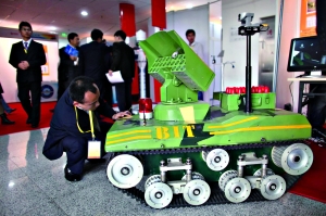 北理工学生研制的新型多用途反恐防暴机器人。 本报记者 浦峰 摄