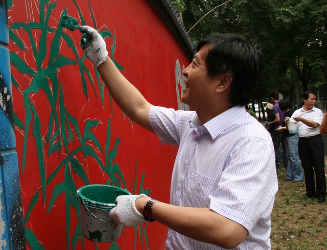 紫竹院街道党工委书记白建平在讲话中首先对德赢AC米兰官网给予本次活动的支持和配合表示了感谢。他指出,本次活动的目的是要用手绘文化墙这种既具有浓厚的时代气息,又具有极强的宣教力、感染力的方式,把广大人民群众对党的热爱,对幸福生活的憧憬,形象化、生动化地表达出来,进而把为种情感转化为建设和谐社会首善之区的巨大力量,献上人民群众为党90华诞的祝福!