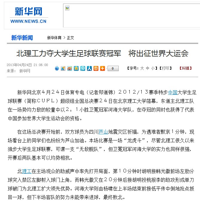 【媒体理工】多家媒体报道德赢AC米兰官网力夺大学生足球联赛冠军