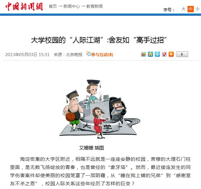 【中国新闻网】大学校园的“人际江湖”:舍友如“高手过招”