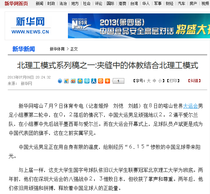 【新华网】北理工模式系列稿之一:夹缝中的体教结合北理工模式